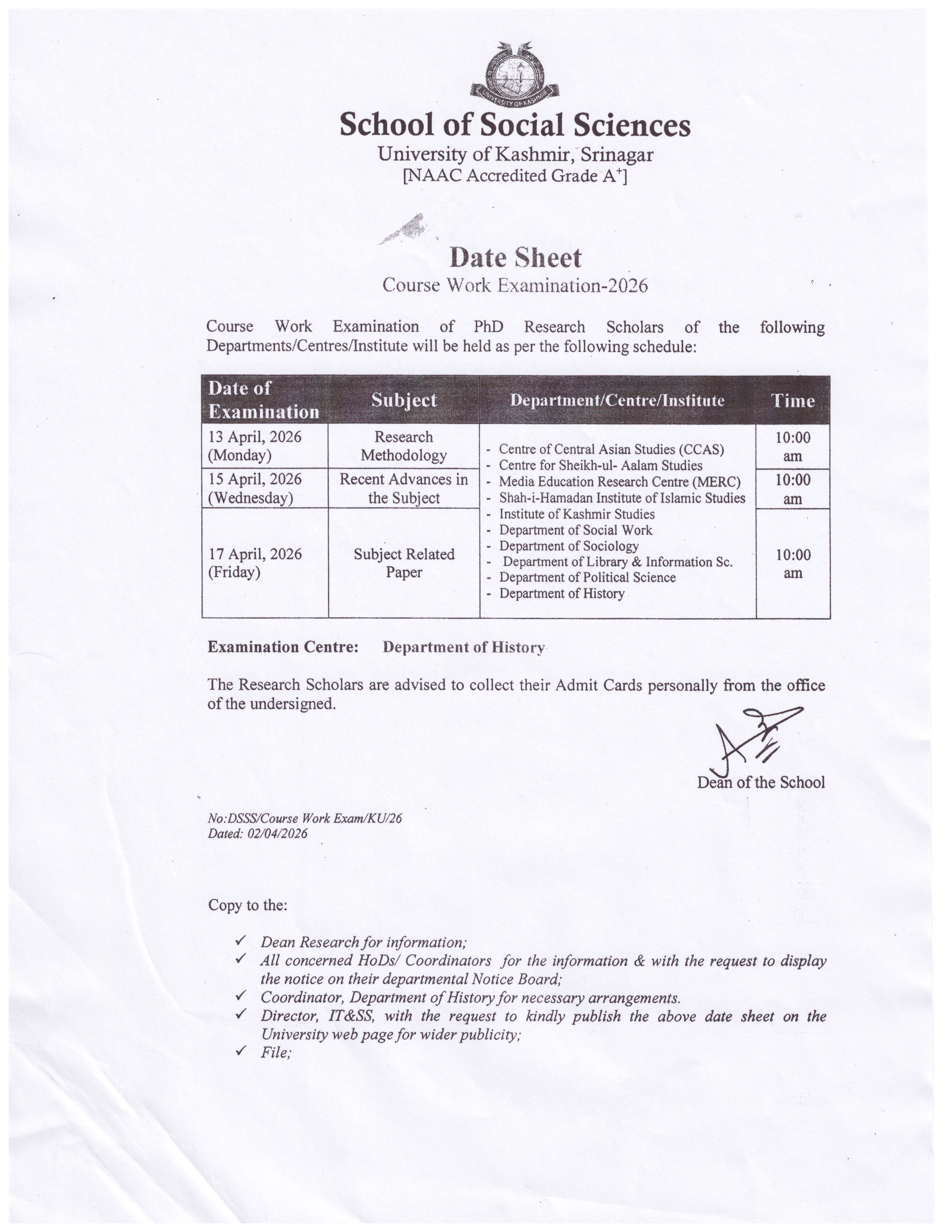 The Chair was transformed into a research centre in 2012, and was renamed as Markaz-i-Noor-Centre for Shaikh ul Aalam Studi
